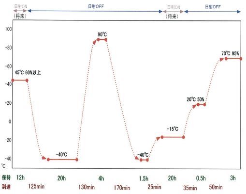 تقادم المواد: جهاز تشعيع الطيف الشمسي الكامل.الإشعاع الحراري: مصباح هاليد معدني 700 ~ 1100W / m2